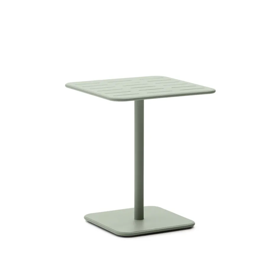 - Outdoor tafel gemaakt van gegalvaniseerd staal met afwerking in groene. Basis versterkt met cement voor stabiliteit.