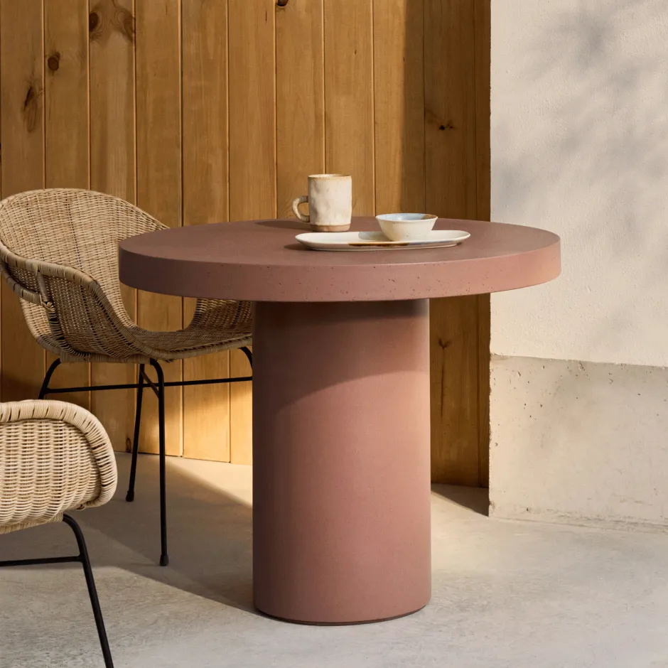 De Aiguablava collectie combineert functionaliteit en design op zijn best. Geïnspireerd door de puurheid van het minimalisme en met eenvoudige lijnen wordt dit meubel de ziel van elke omgeving en zorgt het zowel binnen als buiten voor een unieke persoonlijkheid. Gemaakt van GFRC (glasvezelversterkt beton), een materiaal dat zich onderscheidt door weerbestendigheid, lichtheid en duurzaamheid. Deze tafel is ontworpen om jarenlang dezelfde charme te behouden als op de eerste dag. Elke Aiguablava tafel is een exclusief element dankzij de unieke tinten, texturen en porositeiten die ontstaan tijdens de productie. De getextureerde afwerking met een glazuur dat de kleur versterkt en de nerven van het beton onthult, maakt van deze tafel een functioneel kunstwerk. Bovendien is de pigmentatie geïntegreerd in het mengsel, waardoor een diepe kleur wordt gegarandeerd die bestand is tegen de tand des tijds, en wordt slijtage van het oppervlak, zoals bij andere technieken, vermeden. Kleine onregelmatigheden, zoals microscheurtjes of zichtbare poriën op de randen en de basis, maken deel uit van de esthetische taal van het beton en hebben geen invloed op de integriteit van het product. Om het uiterlijk te behouden, wordt aangeraden om hem in de herfst en winter te beschermen met een waterdichte laag en twee keer per jaar Sterina steenbeschermer aan te brengen.