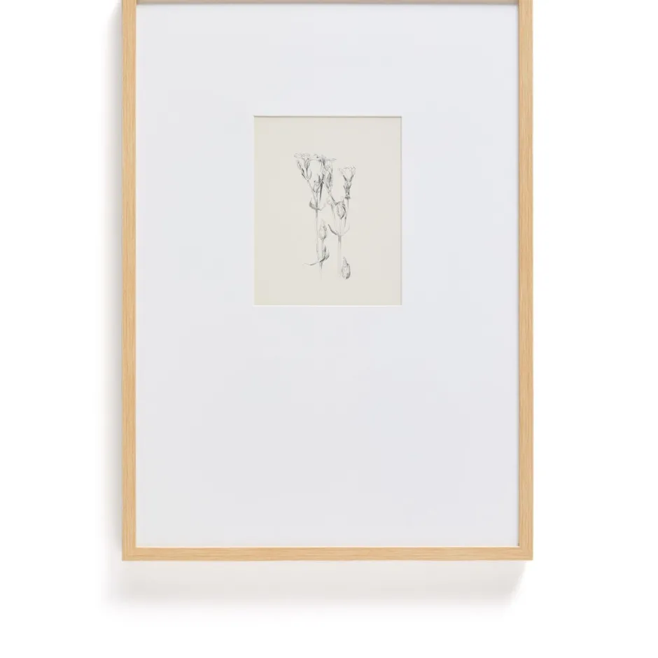 Dit schilderij valt op door de gedrukte illustratie in botanische stijl, uitgevoerd in potlood met een patroon dat doet denken aan traditionele graveertechnieken. Elke streek weerspiegelt de precisie en delicatesse van klassieke botanische tekeningen en brengt karakter en verfijning in de kamer. De illustratie is gevat in een breed passe-partout dat hem omlijst, voor elegantie zorgt en de afbeelding laat ademen, voor een evenwichtig en tijdloos visueel effect. Een veelzijdig werk voor wie op zoek is naar decoratieve kunst met een subtiele aanwezigheid.