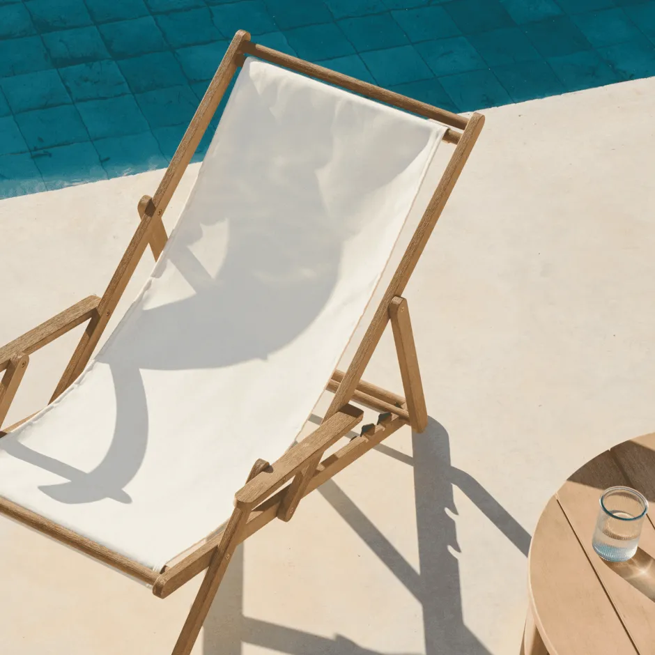 De opklapbare strandstoel met armleuningen is de perfecte combinatie van praktisch design en natuurlijke esthetiek om van uw momenten in de buitenlucht te genieten. De structuur, gemaakt van massief acaciahout met een geborstelde afwerking, valt op door zijn unieke tinten en nerven, wat een vleugje authenticiteit toevoegt aan elk element. Dit hout met 100% FSC™ Chain of Custody-certificaat is afkomstig van verantwoord bosbeheer. Alle metalen onderdelen zijn gemaakt van roestvrij staal, wat zorgt voor een betere weerbestendigheid en corrosie voorkomt. De zitting, gemaakt van duurzaam mesh, is ontworpen om blootstelling aan de zon te weerstaan, waardoor het een ideale keuze is voor buiten. Hij is opklapbaar, dus kan hij gemakkelijk worden opgeborgen en neemt hij weinig ruimte in wanneer hij niet wordt gebruikt. Om de esthetiek en duurzaamheid te behouden, raden wij aan om ten minste eenmaal per jaar Sterina houtbeschermer aan te brengen. Een element dat stijl en comfort in evenwicht brengt en zich elegant en veelzijdig aanpast aan uw omgeving.