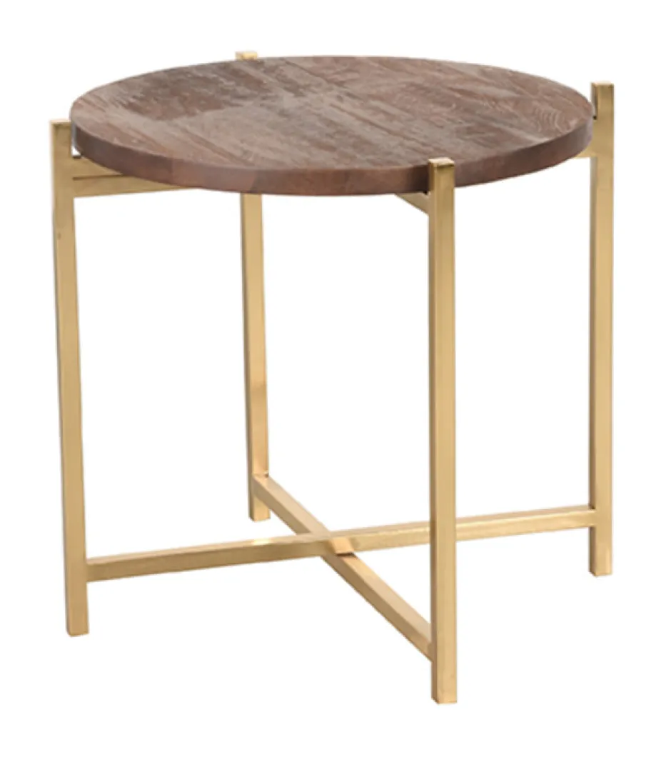 Bijzettafel Dox 40x40x40cm van LABEL51. Dox is een sfeervolle bijzettafel met een licht gezandstraald mango houten rond blad in espresso kleur. Het onderstel in met kruispoot is van chique goud metaal. Bijzettafel Dox geeft je interieur een stijlvolle en warme touch en is ook eindeloos te combineren met bijvoorbeeld Dox salontafel of andere bijzettafels van LABEL51.