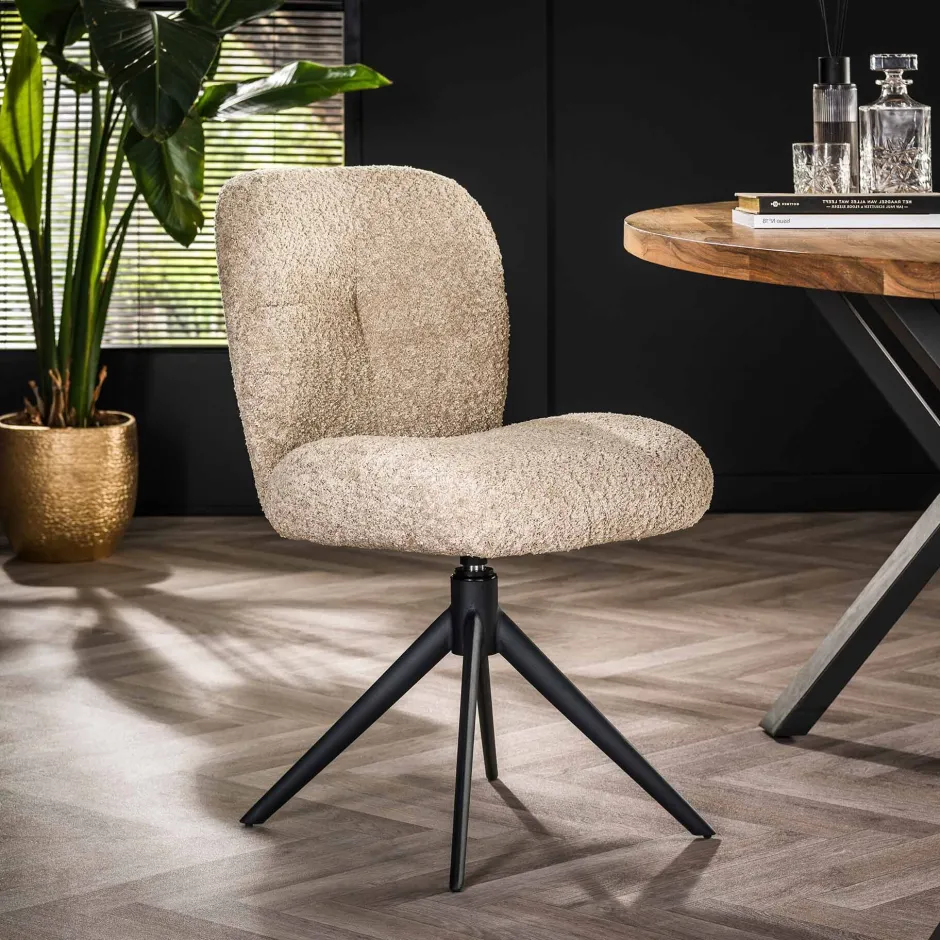 Online LifestyleFurn Draaibare Eetkamerstoel Lovie Bouclé Zand