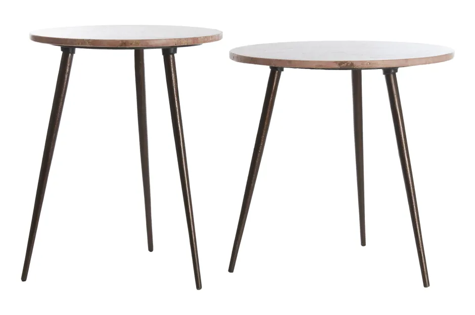 Online Light & Living Ronde Bijzettafel Zeca Travertin, Set van 2 stuks, kleur Rood