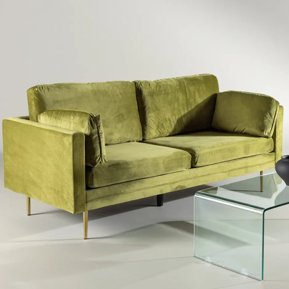 De Tylan bankenserie biedt zowel een elegant ontwerp als een hoog zitcomfort. Deze 2-3-zits bank is een stijlicoon met zijn rechte Scandinavische vorm en moderne hoge armleuningen. De stijlvolle crèmekleurige fluwelen bekleding en cilindrische metalen poten creëren een tijdloze expressie waardoor de bank gemakkelijk te plaatsen is en past bij andere inrichtingen.