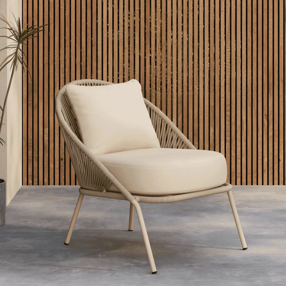 Karlene is een chique loungestoel die stijl en comfort combineert om de perfecte plek te creëren om te relaxen. Met zijn ronde rugleuning en aardse beige kleur is Karlene een strak meubelstuk dat perfect past in elke omgeving, van het terras tot de woonkamer. De stoel is gemaakt van staal en bekleed met duurzaam polyester, wat zorgt voor zowel langdurige kwaliteit als een tijdloos ontwerp.