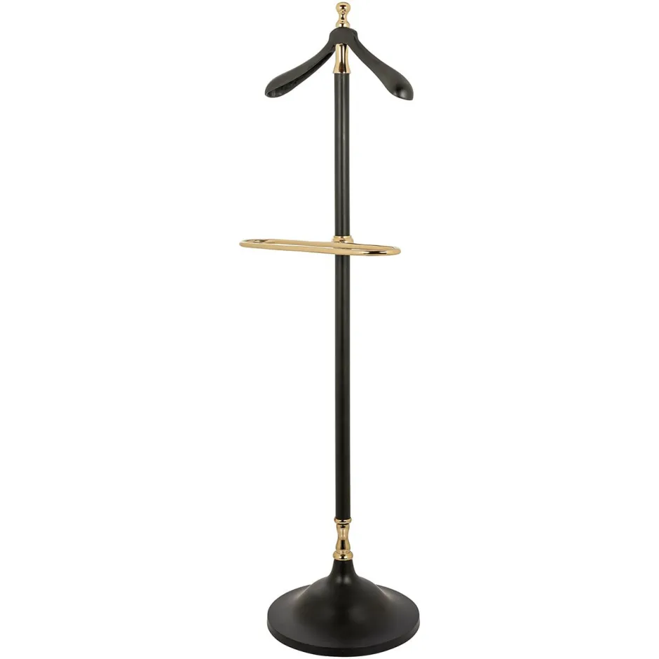 Het Kledingrek Balley combineert functionaliteit met verfijnde esthetiek, perfect voor wie zijn of haar kleding met stijl wil presenteren. Dit kledingrek is voorzien van een elegante staander en een stevige voet, die stabiliteit garandeert. Het bovenste gedeelte is ontworpen met een kledinghanger die de perfecte ondersteuning biedt voor kostuums, jassen of andere kledingstukken. De subtiele goudkleurige accenten voegen een vleugje luxe toe, terwijl het slanke ontwerp zorgt voor een moderne uitstraling. Ideaal voor gebruik in de slaapkamer, kleedkamer of hal om je favoriete kledingstukken netjes en toegankelijk te houden.