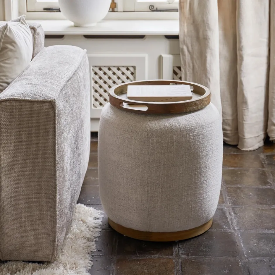 Deze poef met bijpassend dienblad is de perfecte toevoeging voor jouw woonkamer. De poef heeft een polyester bekleding en het dienblad is gemaakt van iepenhout. Handig voor een hapje en een drankje maar ook een mooie plek om decoratie op te presenteren. De poef en het dienblad zijn samen maar ook afzonderlijk te gebruiken.