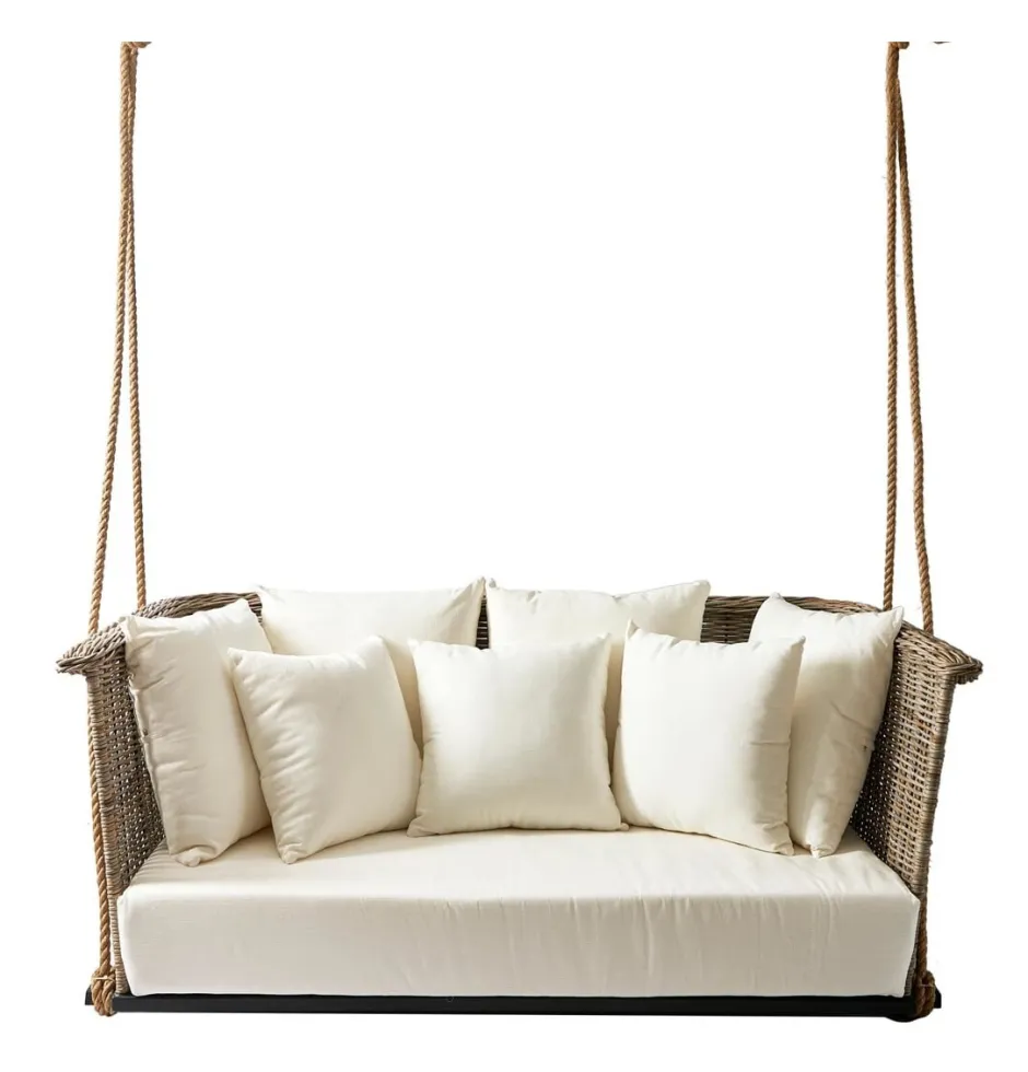 Een heerlijke zomerse dag, wie boft kan die lekker buiten doorbrengen. Op de hangende sofa als het even kan, goed boek erbij, gezond drankje of een smoothie en laat de boeren maar dorsen. De sofa is van rattan kubu gemaakt, heerlijk materiaal dat een buitje wel verdraagt. Hij is 1.97 meter breed, dus met zijn tweeën erin zitten kan ook. Let op dat het maximaal toegestane gewicht van 200 kilo niet wordt overschreden.