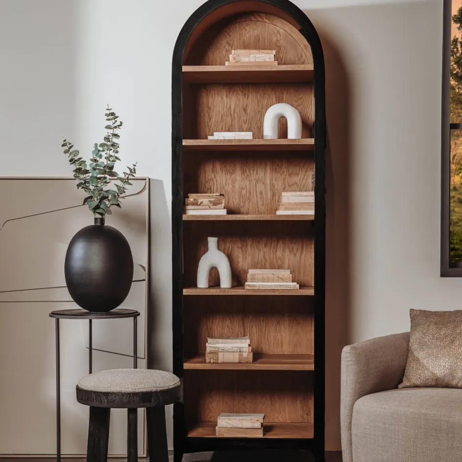 Online Tower Living Wandkast Rotondi Mangohout en eikenfineer, 220 x 70cm, kleur Zwart