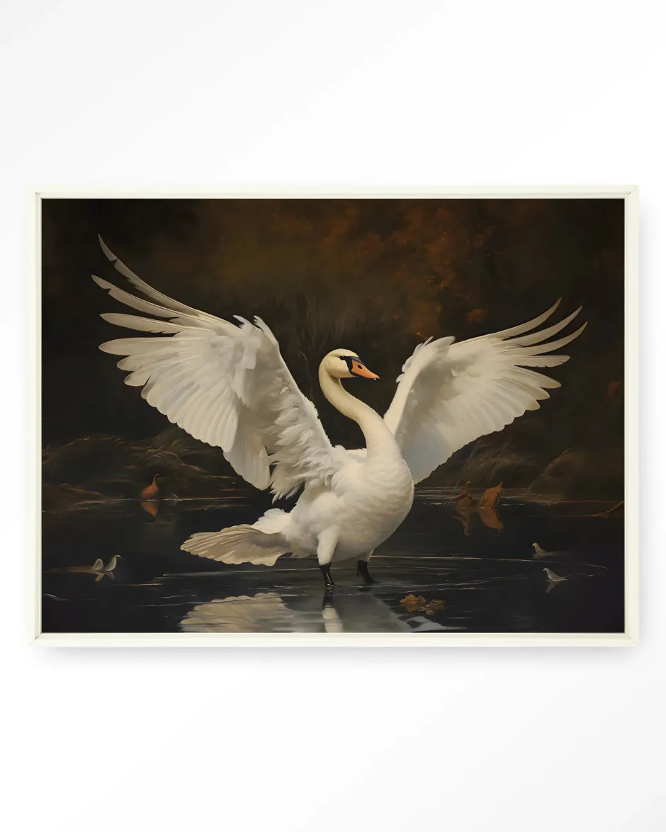 Online Urban Cotton Wandkleed Swan Lake in maat en frame naar keuze