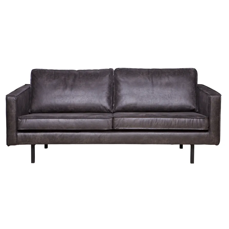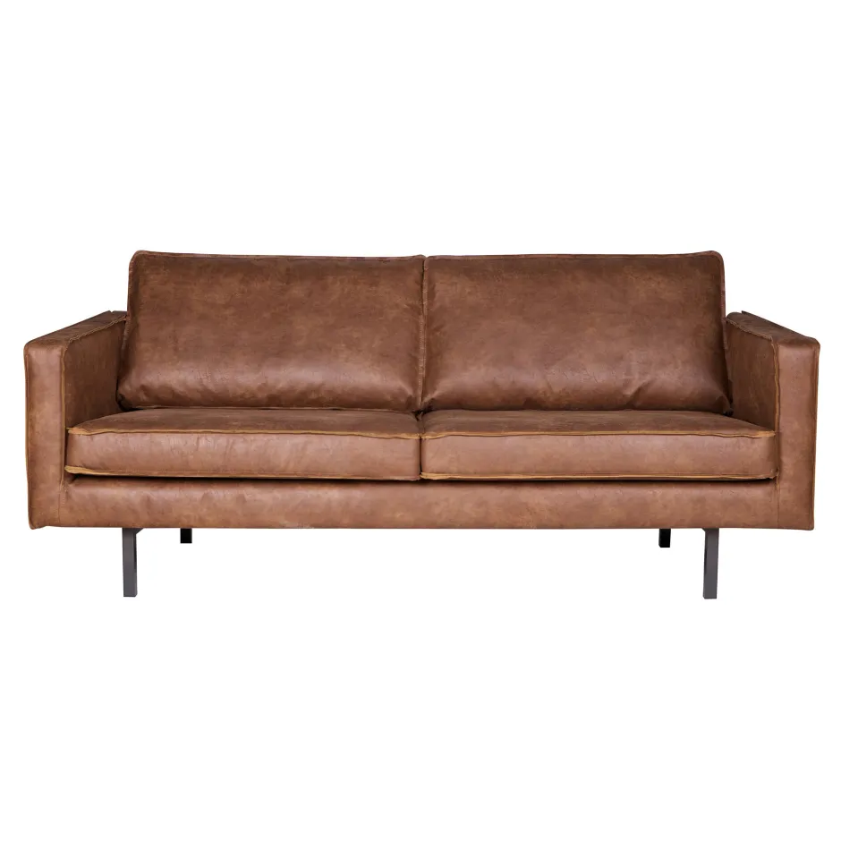 De Rodeo bank is opgebouwd uit een combinatie van massief hout, spaanplaat, polyurethaan schuim met een dichtheid van 25 kg/m3 en een zigzag vering. De zitting bevat een polyurethaan schuim met een dichtheid van 30 kg/m3 (T3037). De rugleuning bestaat uit een combinatie van 70% gesneden schuim en 30% siliconen. Deze Rodeo is bekleed met een lederlook. Onze Copa lederlook heeft een unieke uitstraling en is door het gebruik van leer restanten een duurzame keuze! De lederlook bestaat uit 70% vezels van rundleder, 30% polyester en heeft een Martindale van 30.000. Het materiaal is opgebouwd uit twee onderdelen: de onderlaag bestaat uit gerecyclede leervezels, wat zorgt voor de natuurlijke uitstraling. De bovenste laag is een polyester afdeklaag die het leer beschermt en oneffenheden voorkomt. Hierdoor wordt het een stevige combinatiestof. De microvezel is gebreid van zeer kleine, synthetische vezels. Deze productietechniek zorgt voor de stevigheid en een fijn, zacht gevoel. De stof is zeer kleurvast. Tijdens het gebruik zal het uiterlijk en de structuur van de stof zijn natuurlijke kenmerken meer laten zien, dit verandert niks aan de duurzaamheid en kwaliteit.