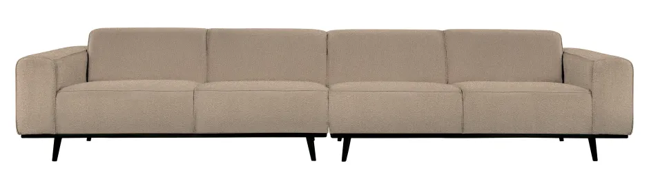 Een bank als deze staat als een duidelijk element in huis. Een bank bepaalt de sfeer van het interieur en deze bank biedt een goede basis voor meerdere woonstijlen. Deze bank Statement xl uit de collectie van WOOOD, is basic, maar valt door de omvang zeker op! Statement is bekleed met een bouclé stof (100% PES) in een beige kleur en dat geeft de bank een chique uitstraling en voelt heerlijk aan. Deze ruime 4-zits xl bank biedt ruimte genoeg voor het hele gezin en zit heerlijk. De Statement bank is beschikbaar in meerdere varianten, stoffen en kleuren.