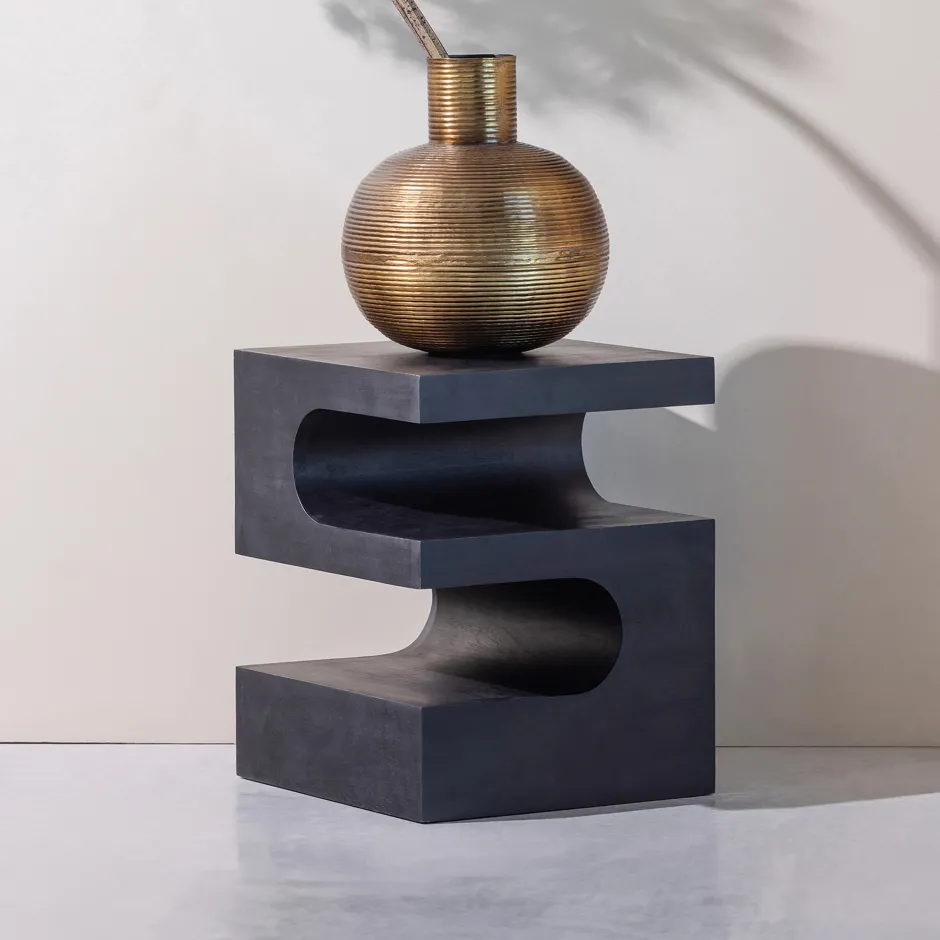 Het speelse ontwerp van de Toma bijzettafel geeft het artikel een originele uitstraling. Toma is onderdeel van de WOOOD Exclusive collectie en valt op door zijn grove mangohout en de diepzwarte afwerking. Het gedraaide design zorgt ervoor Toma een echte sfeermaker is in de gedurfde interieurstijlen.