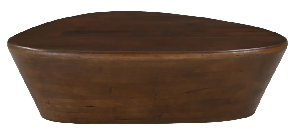 Deze salontafel van massief mangohout is een echt hoogtepunt in elke woonruimte. Met zijn opvallende, driehoekige tafelblad en het feit dat hij uit één stuk hout is gemaakt, belichaamt hij minimalistisch design en natuurlijke esthetiek. Het gebruikte mangohout maakt indruk door zijn duurzaamheid en de unieke nerf die elk stuk zijn eigen karakter geeft. De warme, bruine kleur van het hout straalt een aangenaam comfort uit en brengt tegelijkertijd een stukje natuur in je vier muren. Het afgeronde driehoekige tafelblad is een blikvanger en geeft de tafel een modern, sculpturaal tintje. Deze ongewone vorm maakt de tafel niet alleen bijzonder elegant, maar zorgt ook voor een fris accent in elk interieur. De geometrische vorm is ideaal voor een creatieve inrichting, in een hoek of als contrast met ronde en rechthoekige meubels. Wat deze salontafel bijzonder maakt, is dat hij uit één stuk is gemaakt. Zonder zichtbare verbindingen of overgangen ontstaat een harmonieuze, vloeiende look die de aandacht trekt. De stevige constructie garandeert ook stabiliteit en duurzaamheid. Als stijlvolle salontafel naast de bank of als decoratief accent in een leeshoek – deze tafel is veelzijdig. Dankzij het compacte ontwerp past hij perfect in kleinere kamers of als aanvulling op andere meubels.