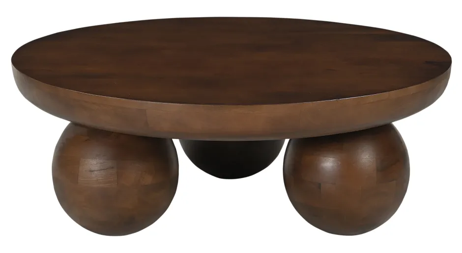 De salontafel van massief mangohout combineert modern design met tijdloze elegantie. Met zijn ronde tafelblad en drie bolvormige poten is deze tafel niet alleen een functioneel meubelstuk, maar ook een stijlvol hoogtepunt in elke woonkamer. Deze salontafel is gemaakt van massief mangohout en biedt een opmerkelijke robuustheid en duurzaamheid. Mangohout staat bekend om zijn stabiliteit en indrukwekkende nerf, wat elke tafel een unieke uitstraling geeft. De warme, bruine kleur creëert een gezellige sfeer en brengt een stukje natuur in huis. Het ronde tafelblad maakt flexibel gebruik mogelijk en creëert een open, uitnodigende sfeer. Het biedt genoeg ruimte voor drankjes, hapjes en decoratieve elementen, terwijl de zachte rondingen de gezelligheid van de kamer onderstrepen. Het royale tafeloppervlak is ideaal voor gezellige avonden met familie en vrienden. De drie bolvormige poten zijn een bijzonder designelement dat de tafel een modern tintje geeft. Deze vorm zorgt niet alleen voor een aantrekkelijke esthetiek, maar ook voor een uitstekende stabiliteit. Dankzij de bolvormige poten kan de tafel in verschillende posities worden geplaatst zonder dat de stabiliteit wordt aangetast. Deze salontafel is een echte allrounder. Als centraal punt in de woonkamer, als bijzettafel naast de bank of als stijlvol element in een leeshoek – hij past naadloos in verschillende interieurstijlen, van modern tot rustiek. Zijn natuurlijke uiterlijk en elegante ontwerp maken het een ideale metgezel in elke kamer.