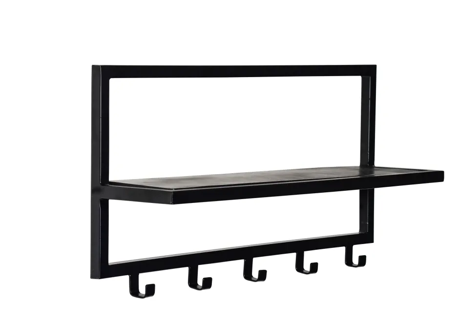 Outlet Brix Kapstok Bono Mangohout, met 5 haken en plank Zwart