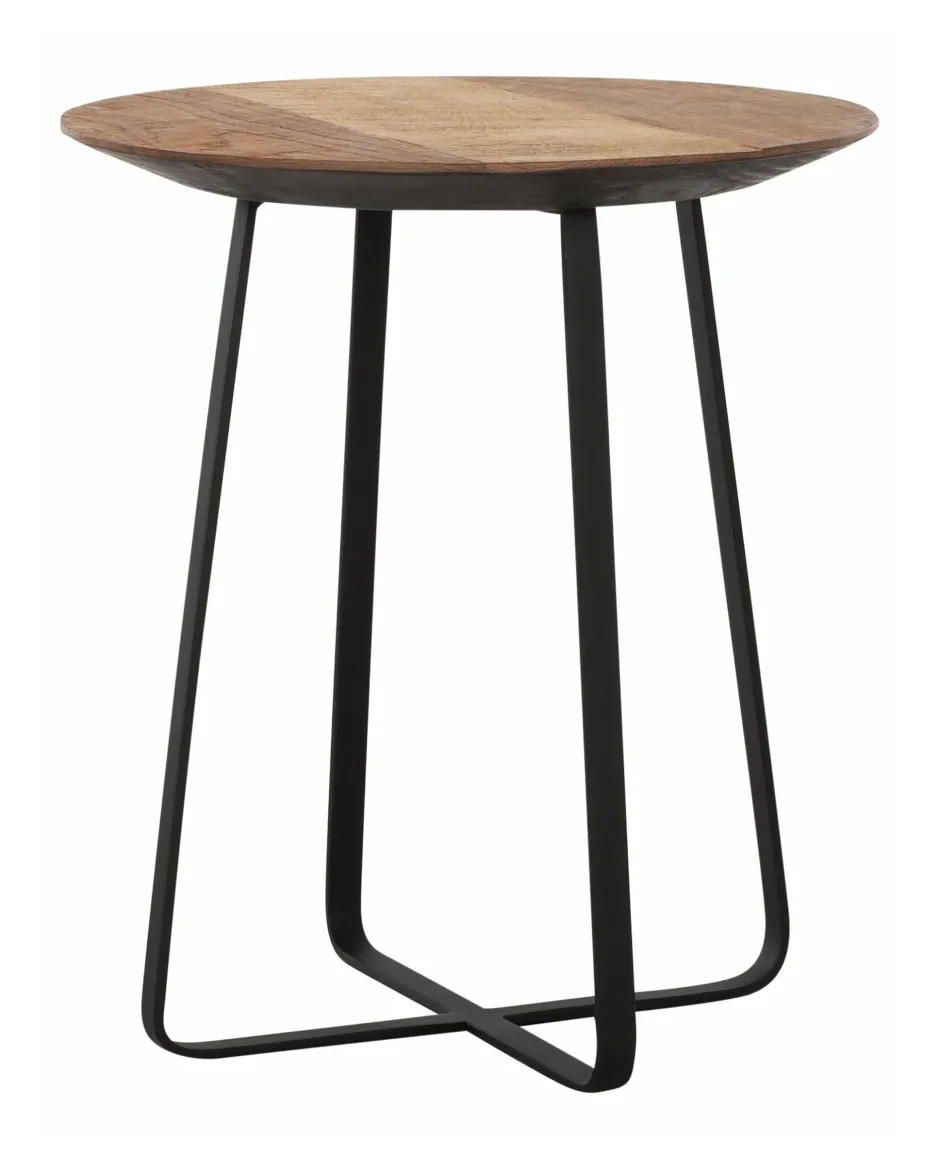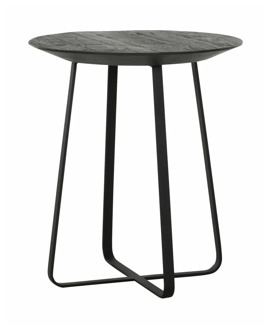 DTP Home bijzettafel Neptunes heeft een tafelblad gemaakt van teakhout, dat afloopt naar het zwart ijzeren frame. De tafel heeft een afmeting van 45xØ40 cm.