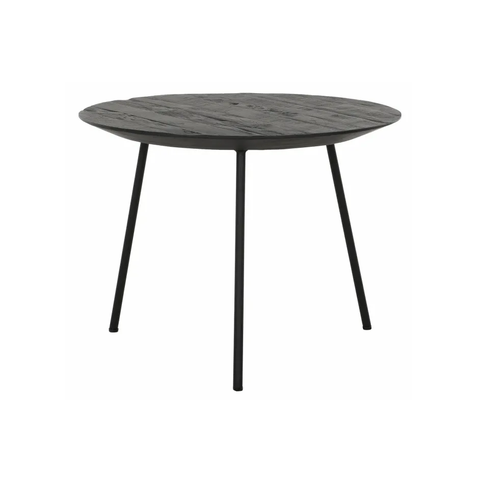 Het tafelblad van DTP Home Salontafel Jupiter is gemaakt van teakhout. Het tafelblad heeft een aflopende rand, richting de poten. De 3 zwart metalen poten dragen het tafelblad. De afmetingen zijn 37xØ50 cm.