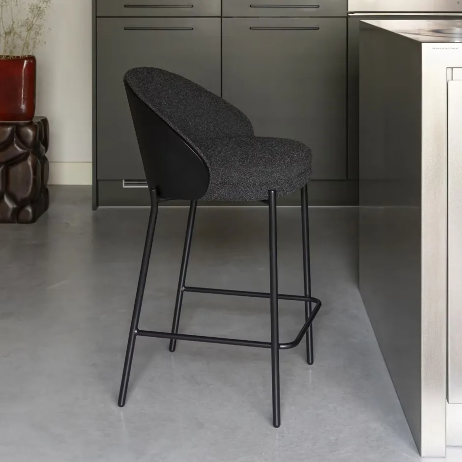 Outlet Dutchbone Barkruk Rodin Essenhout en Bouclé, kleur (zithoogte 65cm) Zwart