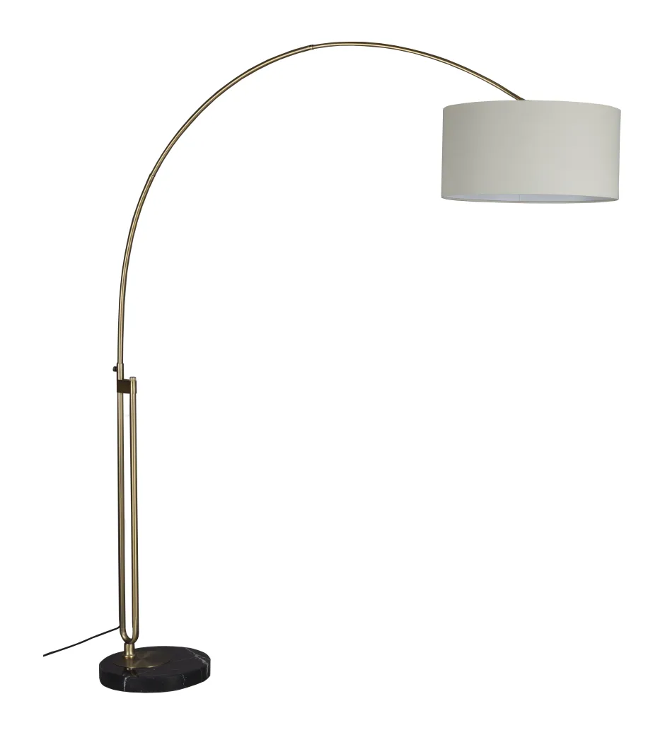 Om van je interieur een sfeervolle plek te maken, mag de juiste verlichting natuurlijk niet ontbreken. De Dutchbone Archie is dan ook onmisbaar voor een knusse zit- of eethoek. Met de lampenvoet van zwart marmer wordt een stevige basis gevormd voor de metalen boog. Deze is afgewerkt met een gouden kleur, die het licht prachtig weerkaatst en een warme gloed afgeeft. Daarnaast zorgt de combinatie met de linnen lampenkap voor een mooi contrast. Een opvallende combinatie van materialen, die perfect samensmelt tot één geheel en jouw interieur verandert in een fijne plek – a place to warm your soul.