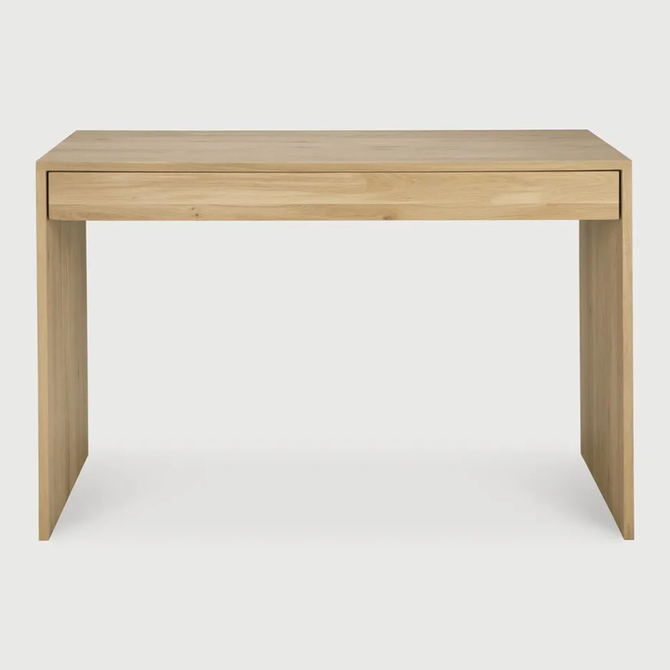 Bureau Wave van Ethnicraft is een prachtig meubelstuk van geolied, massief eikenhout met een natuurlijke afwerking die de warme houtnerf prachtig benadrukt. Het brede blad biedt veel ruimte om lekker te werken of creatief bezig te zijn.
