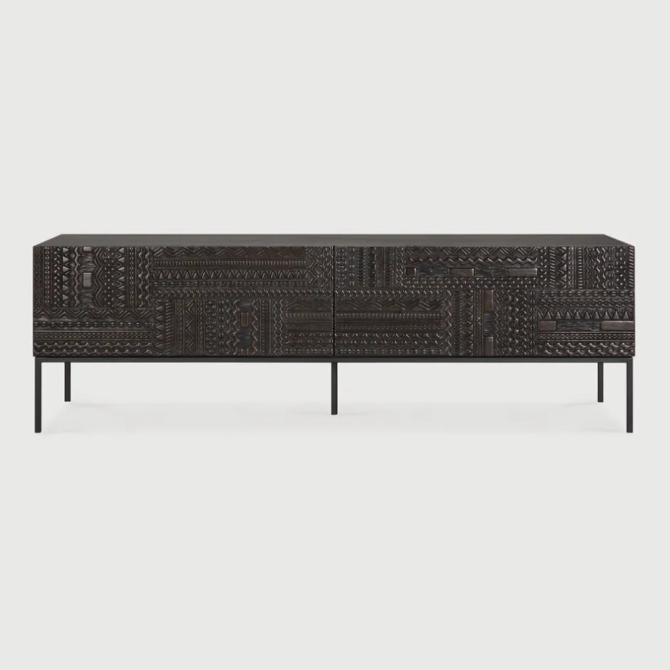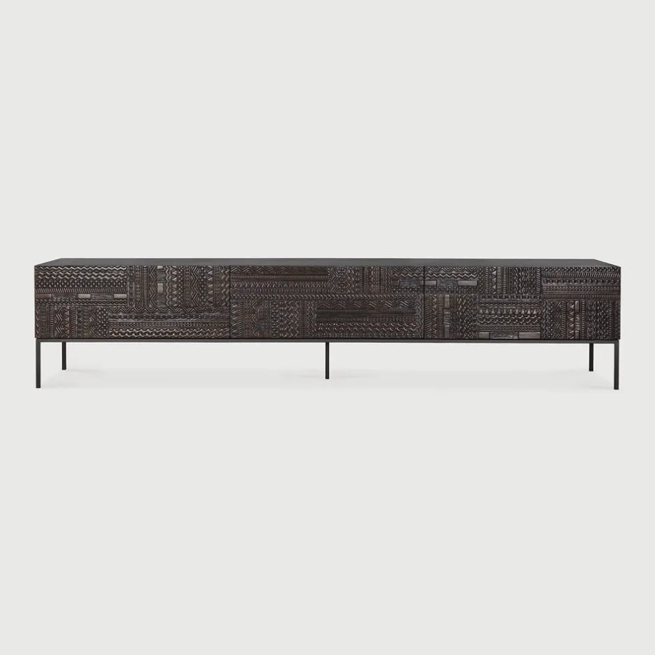 Outlet Ethnicraft TV-meubel Tabwa Gevernist Teakhout Off Black