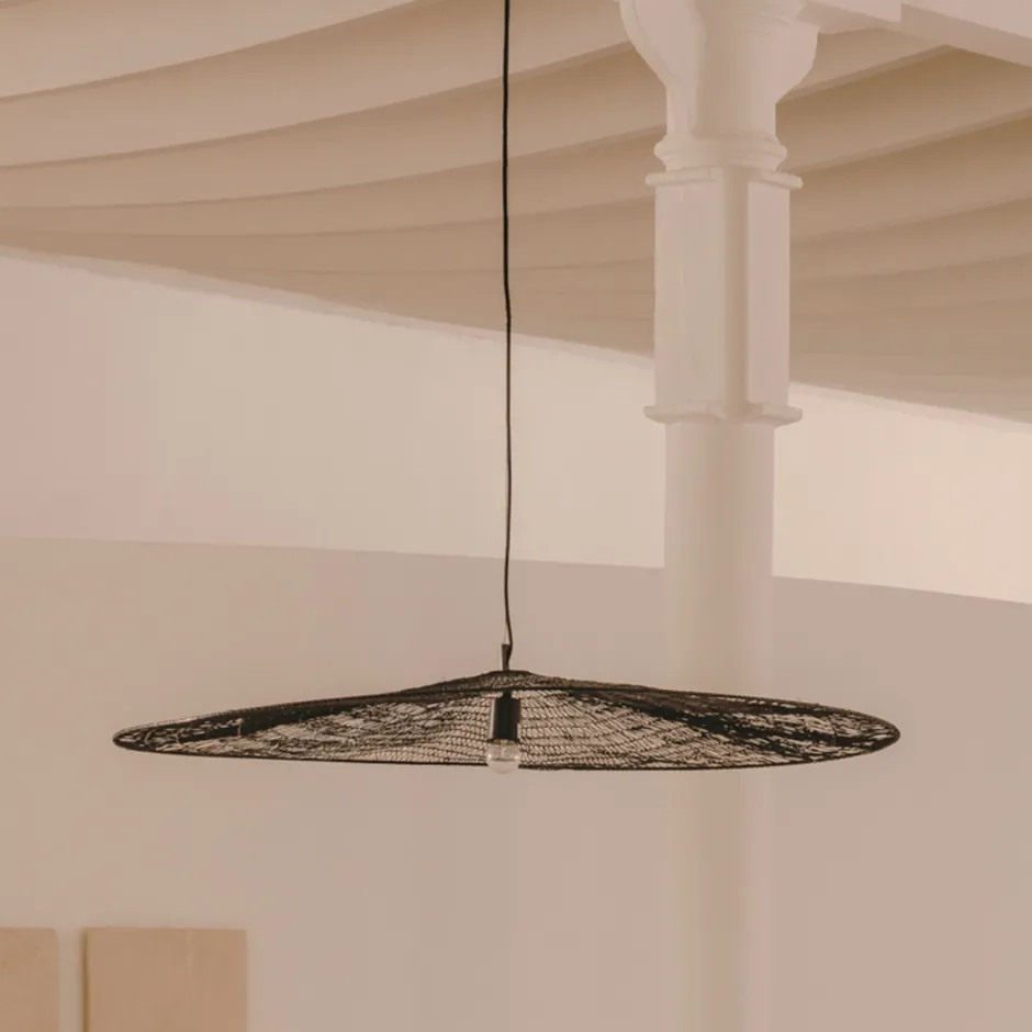 - Metalen plafondlamp met zwarte afwerking.
