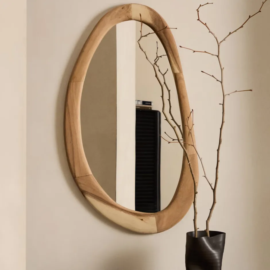 - Spiegel gemaakt van mungur hout met een natuurlijke afwerking.