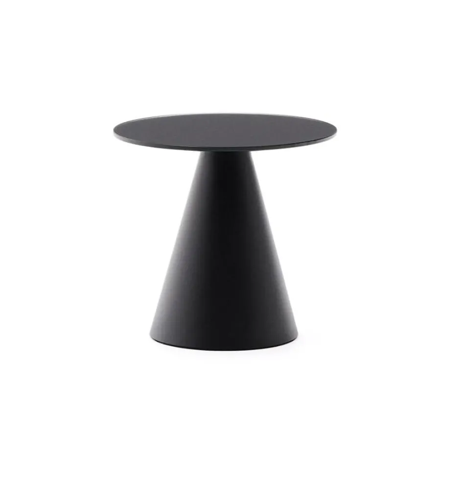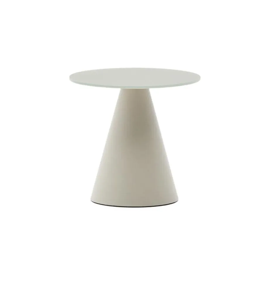 - Bijzettafel met gehard glazen blad met anti-vingerafdrukcoating en conisch stalen onderstel.