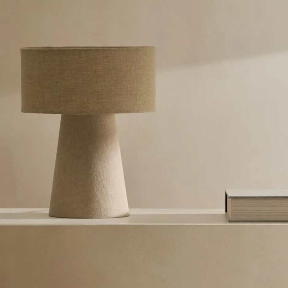 - Tafellamp met voet en stoffen kap in linnen effect.