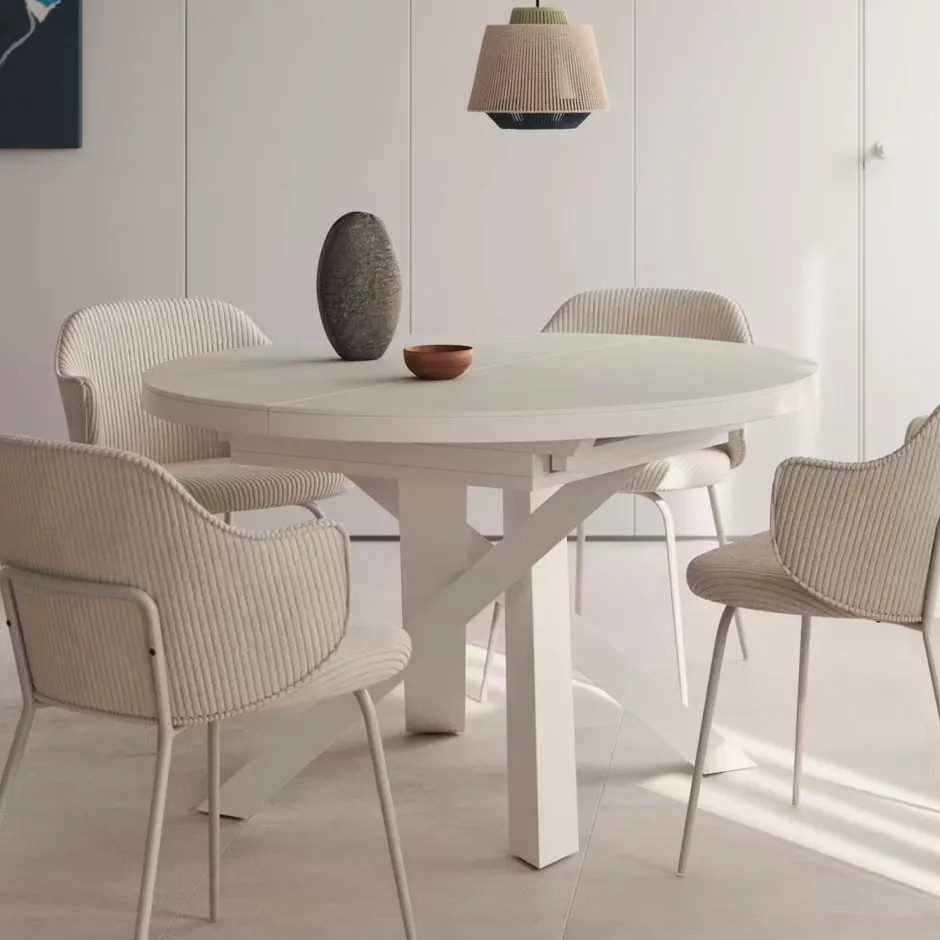 Er is ruimte voor iedereen bij je thuis met deze uitschuifbare tafel met tafelblad van gehard glas. Dankzij de gekruiste stalen pootstructuur heb je meer ruimte, comfort en bewegingsvrijheid.