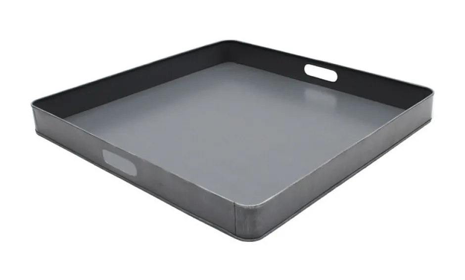 Dit stoere, vierkante dienblad, gemaakt van hoogwaardig metaal is uitgevoerd in de kleur antiek grijs wat het dienblad een extra stoere uitstraling geeft. Beide zijkanten zijn voorzien van uitgespaarde handgrepen zodat het dienblad makkelijk te verplaatsen is. Het vilt aan de onderkant zorgt voor extra bescherming en stabiliteit wanneer het dienblad wordt neergezet.