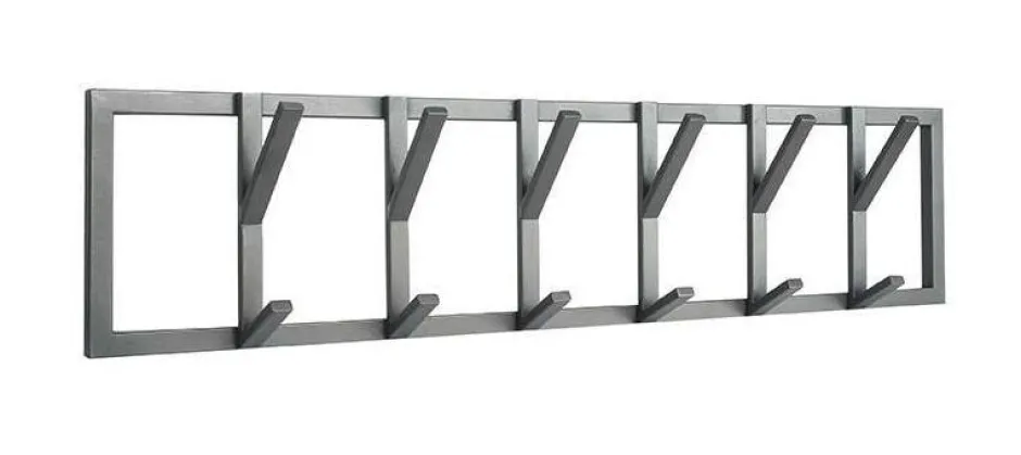 Kapstok Frame, uitgevoerd in de kleur burned steel, is precies zoals een kapstok hoort te zijn: ruimtelijk, decoratief en tijdloos. Frame is voorzien van twee lagen aan haken, waardoor de kapstok ruimte biedt om heel veel jassen op te hangen.