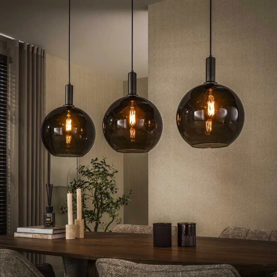 Outlet LifestyleFurn Hanglamp Janetta Glas, 3-lamps, kleur Sienna Bruin