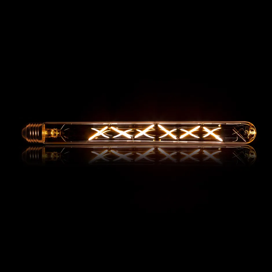 Deze lichtbron LED filament heeft amberkleurig glas en heeft de vorm van een buis en is 30 centimeter lang. Aangezien deze lichtbron een lichtkleur van 2100K heeft, geeft hij extra warm licht. De lichtbron is dimbaar.