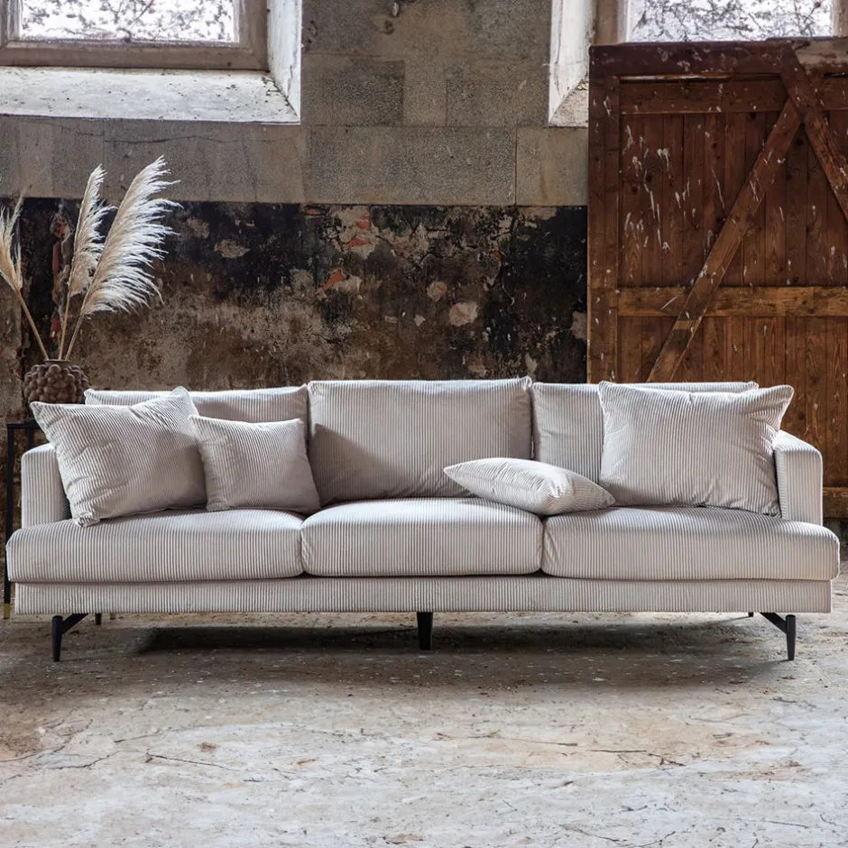 Een droombank die indruk maakt! De bankenserie Tamora combineert modern design met 50’s nostalgie door middel van deze charmante 3-zits bank in beige Manchester stof. Met zijn elegante designtaal en trendy kleurenschaal is een blikvanger gecreëerd die zowel warm als uitnodigend is – hier kun je urenlang comfortabel ontspannen! De smalle metalen botten geven de bank een slimme en decoratieve lift waardoor je er gemakkelijk onder kunt stofzuigen. Afmetingen bank: Breedte: 255 cm, diepte: 56 cm, hoogte: 66 cm.