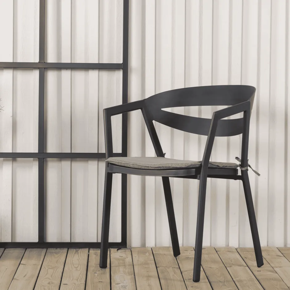 Split eetkamerstoel heeft een uniek ontwerp met geïntegreerde armleuningen – perfect om deze zomer een persoonlijk tintje aan je terras te geven! Gemaakt van zwart gepoedercoat aluminium, volg ons onderhoudsadvies op en de stoelen gaan lang mee. Combineer met een nette eettafel zodat je een complete eetset krijgt die net zo goed in de buitenruimte als in de tuin past. De stoel is stapelbaar.