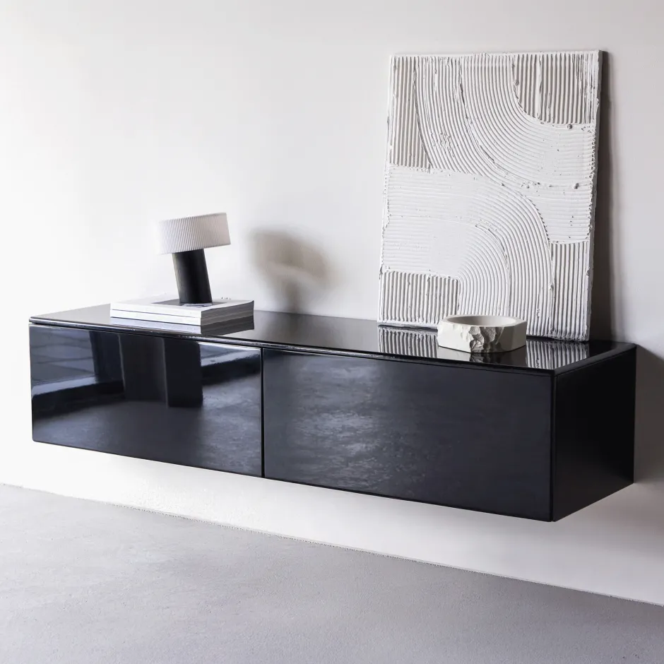 Geef je woonkamer een modern en elegant tintje met Zeke – een strakke TV bank ontworpen voor het bewuste huis. Gemaakt van duurzaam MDF en afgewerkt met een glanzend zwarte coating, straalt Zeke een tijdloze en verfijnde uitstraling uit.