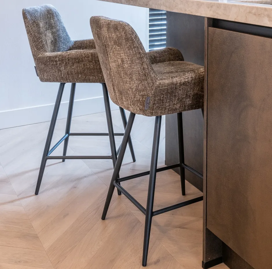 Een comfortabele chique barstoel, dat is ‘Linsey’. Deze barstoel heeft een fijngevormde zitting en is bekleed met een nog fijnere zachte chenille stof. Het zitkussen zorgt ervoor dat je urenlang heerlijk zit op deze kruk.