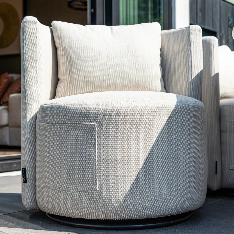 De outdoor draai-eetkamerstoel Marlin combineert luxe en functionaliteit in een elegant design. Met zijn stijlvolle beig…