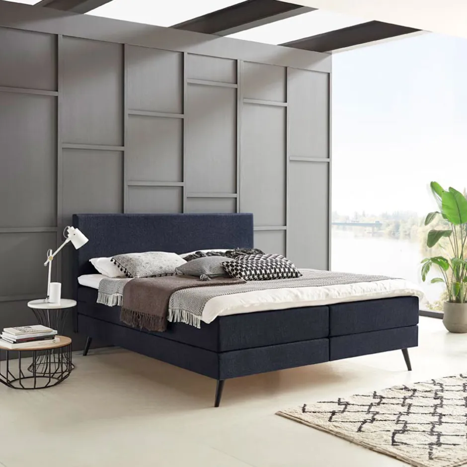 Het strakke hoofdbord vormt een prachtig geheel met de rest van de boxspring. De taps toelopende zwarte poten maken van boxspring ‘Nora’ een strak en fris item in jouw slaapkamer.