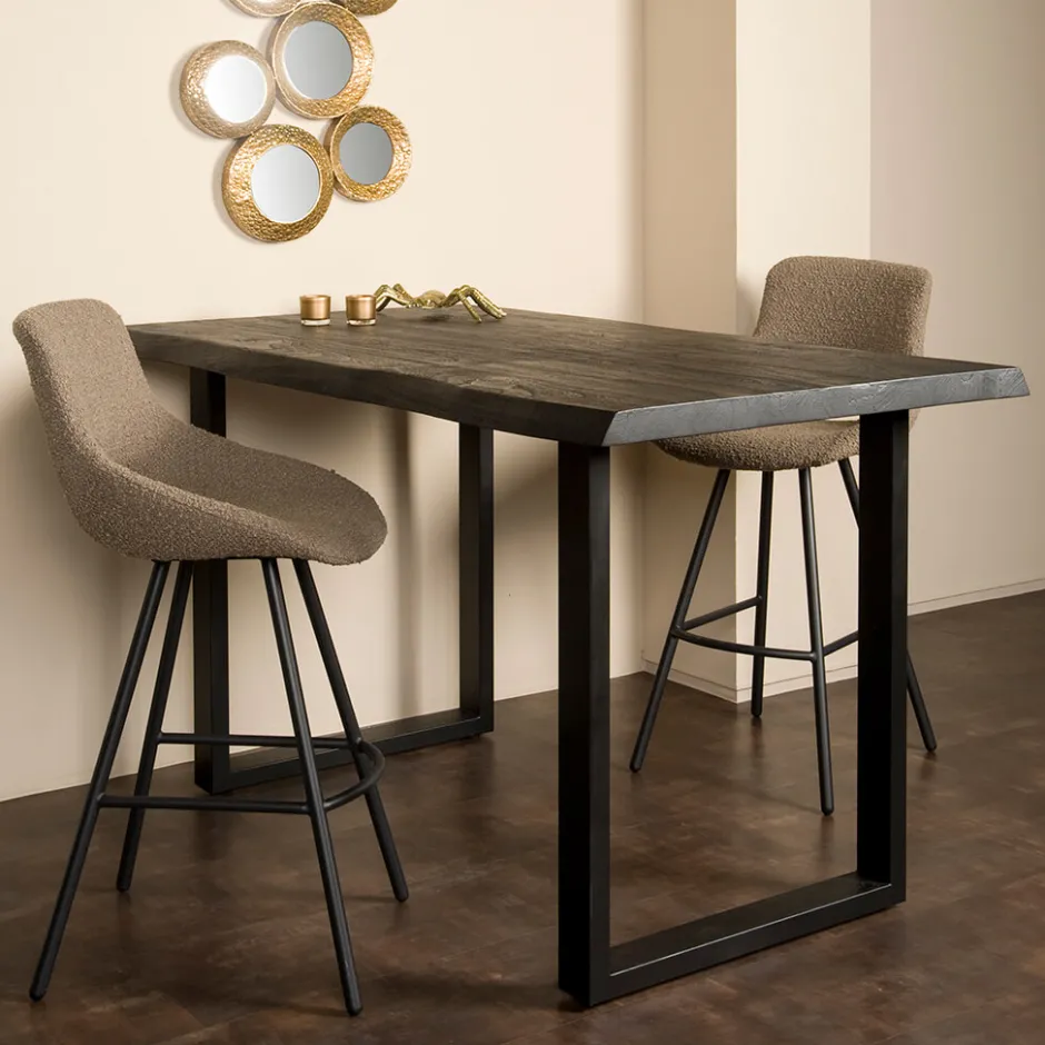 Natuur in huis met de Boomstam Bartafel Ultimo. Het blad is gemaakt van acaciahout en heeft een unieke, natuurlijke vorm. De zwarte afwerking geeft de tafel een stoere uitstraling. Met een stevig onderstel biedt hij stabiliteit voor dagelijks gebruik. Deze bartafel is geschikt voor zowel binnen als buiten. Door het stoere design past hij goed binnen een industriële interieurstijl. Makkelijk te combineren met diverse barkrukken. Een tafel met karakter en praktische waarde.