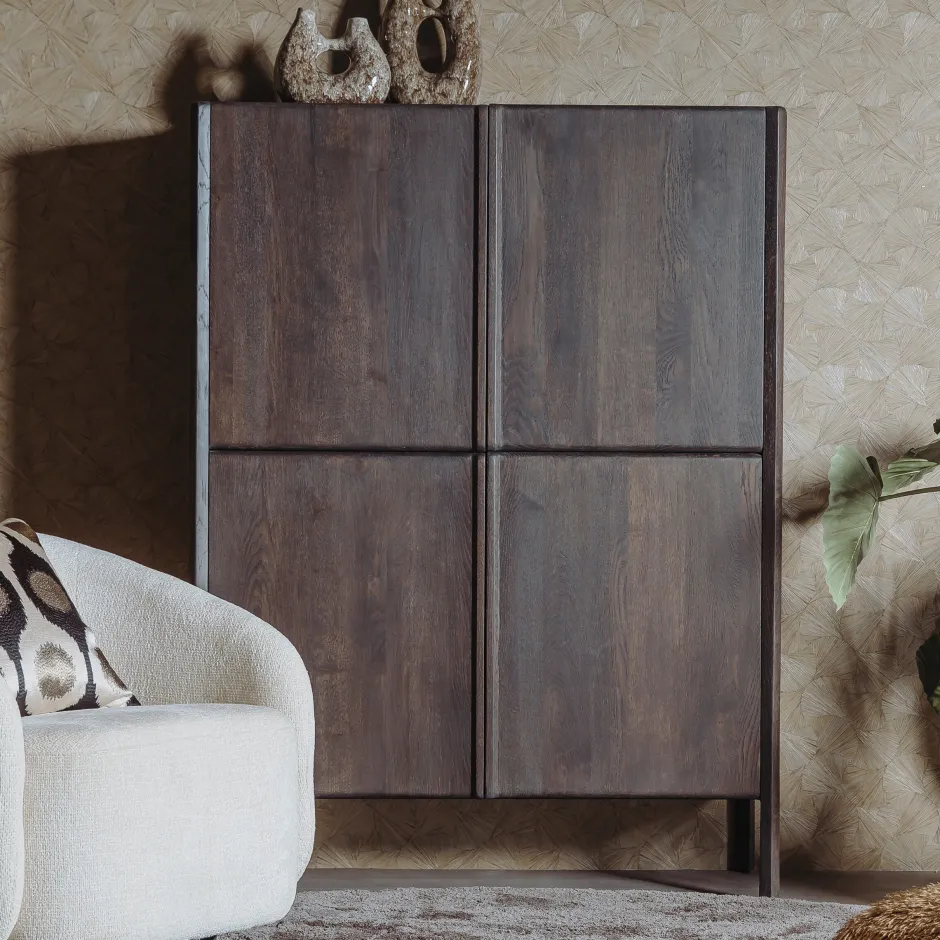 Merk:Tower LivingMateriaal:Eikenfineer met massief eikenhouten fronten en potenBreedte:120cmHoogte:160cmDiepte:42cmAanwe…