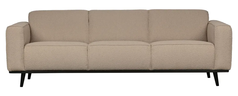 Een bank als deze staat als een duidelijk element in huis. Een bank bepaalt de sfeer van het interieur en deze bank biedt een goede basis voor meerdere woonstijlen. Deze bank Statement uit de collectie van WOOOD, is basic, maar valt door de omvang wel op. Statement is bekleed met een bouclé stof (100% PES) in een beige kleur en dat geeft de bank een chique uitstraling en voelt heerlijk aan. Deze ruime 3-zits bank biedt ruimte genoeg voor het hele gezin en zit heerlijk. De Statement bank is beschikbaar in meerdere varianten, stoffen en kleuren.