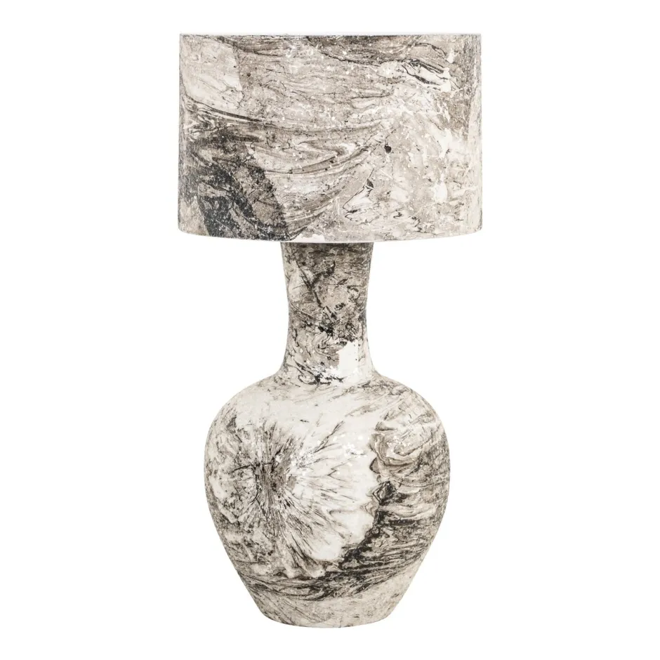 Tafellamp Cecile combineert een sculpturale vorm met een zwart-wit gemarmerde afwerking. Een uniek verlichtingsobject dat ook als decor dient. Lampenkap niet inbegrepen.