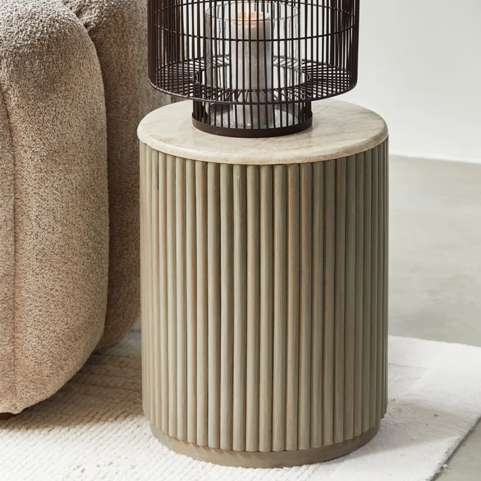 Rivièra Maison Ronde Bijzettafel Villanova Travertin en mangohout, 42cm