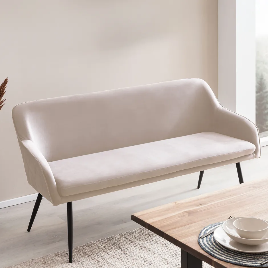 De combinatie van het zachte velvet en de strakke metalen poten maakt ‘Tynise’ een stijlvolle keuze voor jouw interieur. Deze bank biedt niet alleen comfort, maar ook een opvallende esthetische meerwaarde aan elke eethoek.