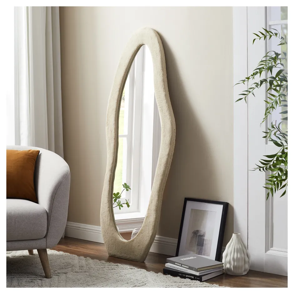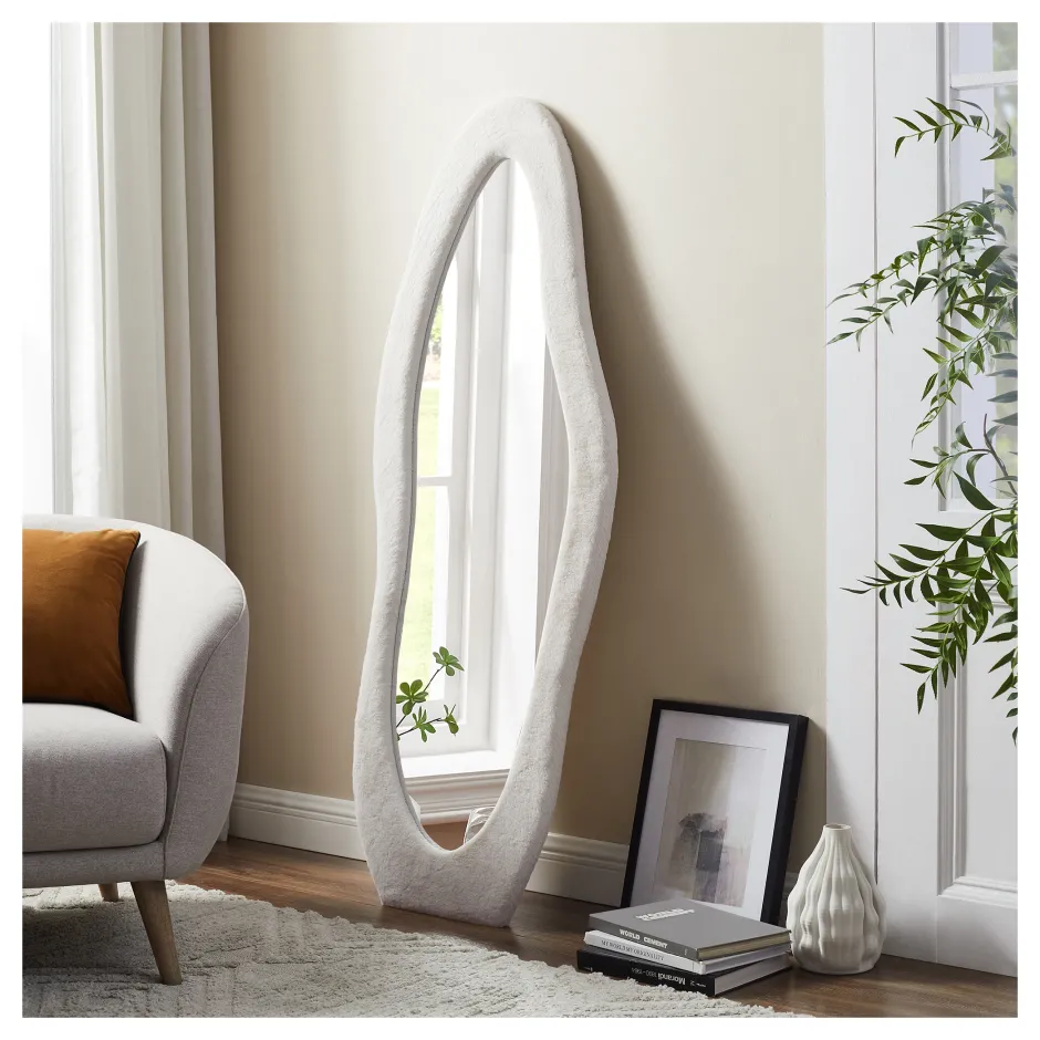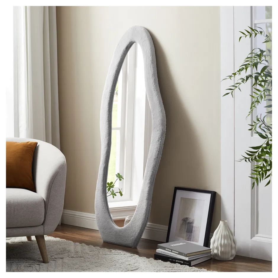 Een spiegel is niet alleen een essentieel accessoire in elk huis, maar ook een uitdrukking van stijl en persoonlijkheid. De spiegel over de volle lengte met golvende lijst van zacht imitatiebont combineert verfijnd design met duurzame materialen en biedt een elegante oplossing voor elke kamer. Met een afmeting van 60×160 cm is deze spiegel een echte blikvanger die functionaliteit en esthetiek perfect combineert. De lijst van deze spiegel is bekleed met zacht imitatiebont, wat niet alleen visueel aantrekkelijk is, maar ook een luxe gevoel geeft. De afgeronde randen van de lijst creëren een harmonieuze en zachte look, waardoor de spiegel een uitnodigend en gezellig element in je huis wordt. De hoes van imitatiebont is verkrijgbaar in verschillende kleuren, waardoor hij gemakkelijk te integreren is in verschillende interieurstijlen – modern, Scandinavisch of boho-chic. De hoes van imitatiebont is Oeko-Tex gecertificeerd, wat betekent dat hij is getest op schadelijke stoffen en als onschadelijk voor de gezondheid is aangemerkt. De bekledingsstof is ook PFC-vrij, wat helpt om het milieu te beschermen door het gebruik van schadelijke perfluor- en polyfluorchemicaliën te vermijden. Met deze spiegel maak je niet alleen een design statement, maar ook een teken van duurzaamheid en verantwoordelijkheidsgevoel.