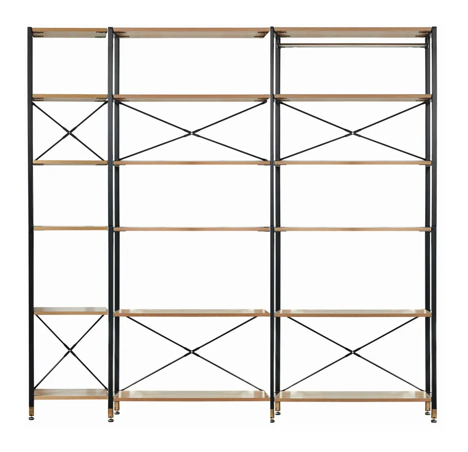 Nu komt er orde in de chaos. Met deze wandplankenset creëer je extra opbergruimte en is ruimtegebrek geen probleem meer. Met een hoogte van 210 cm biedt de wandplankenset je genoeg ruimte voor bijvoorbeeld boeken of decoratieve spullen. Terwijl het stevige frame van metaal is, zijn de planken en laden gemaakt van MDF met een acacia decor. Dankzij de open indeling van de staande plank kun je hem ook gebruiken als roomdivider.