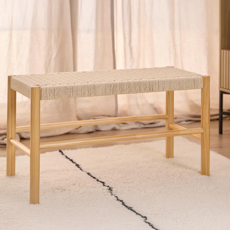 Terugkerend naar de klassieke Scandinavische esthetiek, vangt deze bank de schoonheid van eenvoudige vormen en natuurlijke materialen. De zitting is ingewikkeld geweven met een papieren koord, waardoor een intrigerend patroon ontstaat, en het omarmt het ronde frame van gelakt grenenhout. De bank is veelzijdig in gebruik en kan goed dienen als decoratief object of als handige zitplaats voor twee personen waar dan ook in huis.